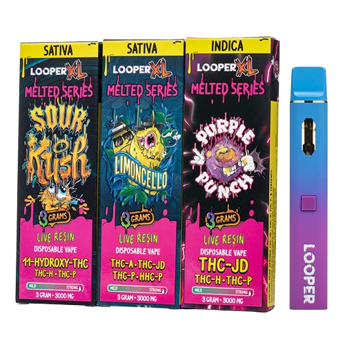 Looper XL Live Resin Disposable 3G is a high-capacity THC vape offering rich live resin flavor and potent effects. Ready-to-use and maintenance-free.
